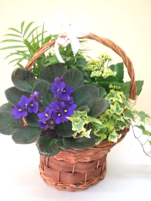 Basket of mixed flowering and foliage plants suitable for indoors and easy to look after. Comes with full care instructions.