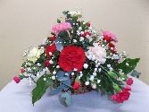 This popular traditional posy arrangement is a colourful mix of Standard and spray Carnations with the addition of fluffy white Gypsophilia. These long lasting flowers provide an excellent value for money gift.